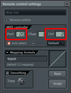 Port を 20 に、CTRL を 2 に設定し、Accept を押します。